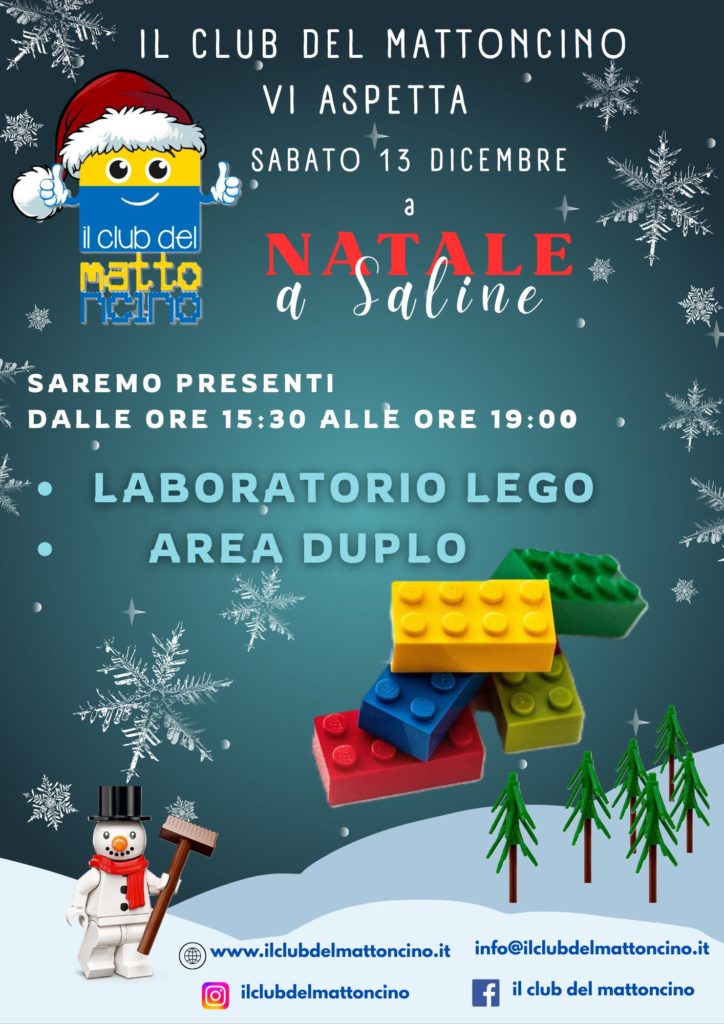 Sabato 13 Dicembre vi aspettiamo a Saline di Volterra (PI) per l’evento di Natale della cittadina dove saremo presenti dalle ore 15:30 fino alle ore 19:00 con il nostro laboratorio Lego e con quello dei Duplo.